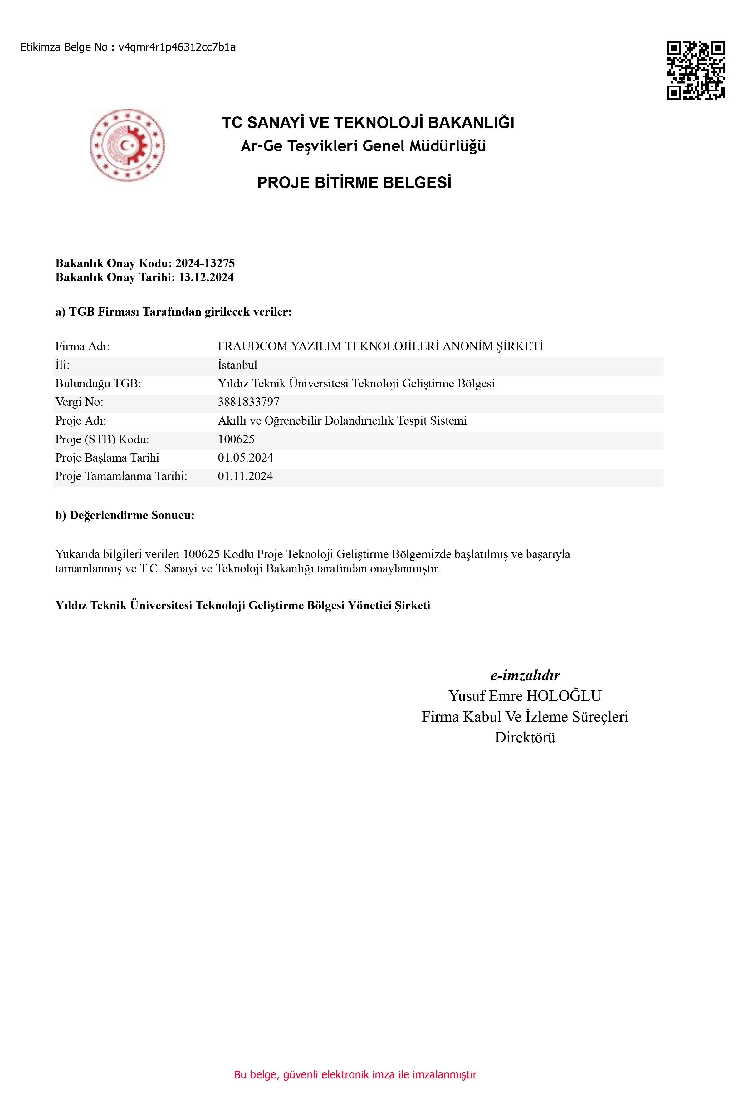 Şirketimiz bünyesinde geliştirilen ve sektöründe öncü bir çözüm olan Bulut KYC platformumuz, Türkiye’nin teknolojik kalkınma hedeflerini destekleyen yasal çerçeveler içerisinde tescillenmiştir. Bu kapsamda, 4691 ve 5746 sayılı kanunların Ar-Ge ve yenilikçilik faaliyetlerine sağladığı teşvikler doğrultusunda, sunduğumuz bu hizmet Katma Değer Vergisi (KDV) mükellefiyetinden istisnadır. Bu yasal ayrıcalık, şirketimizin inovasyona olan bağlılığının ve geliştirdiği teknolojilerin ulusal otoriteler tarafından tanındığının somut bir göstergesi olup, iş ortaklarımıza sunduğumuz güvenilirliğin de temelini oluşturmaktadır.