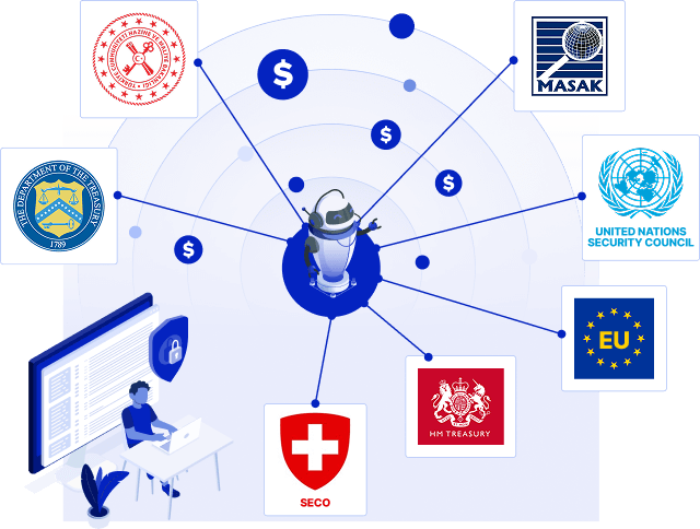 OFAC (SDN ve Konsolide Edilmiş Non-SDN listeleri dahil), Birleşmiş Milletler (UN), Avrupa Birliği (EU), Birleşik Krallık Hazine Bakanlığı (HMT) gibi kritik küresel listeler, neredeyse gerçek zamanlı olarak güncellenir.